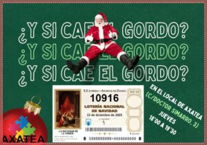 Este año, como en anteriores, AXATEA vende lotería de Navidad. Si quieres colaborar te esperamos en nuestro local los jueves de 18:30 a 19:30h. Dirección: Calle Doctor Simarro num. 3.